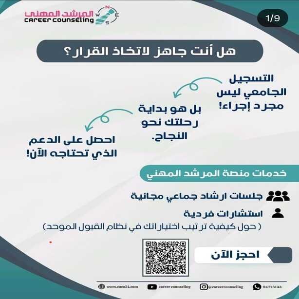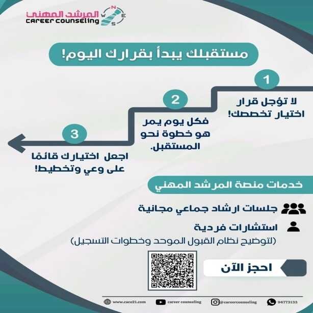 مساعدة الطالب في التسجيل الصحيح بنظام القبول الموحد واختيار التخصصات المناسبة