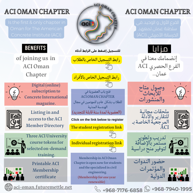 ﻣﻌﻬﺪ ﻫﻤﻢ اﻟﻤﺴﺘﻘﺒﻞ ﻟﻠﺘﺪرﻳﺐ اﻟﻤﻬﻨﻲ واﻷداري واﻟﻔﺮع اﻟﺤﺼﺮي ﻟﻤﻌﻬﺪ اﻟﺨﺮﺳﺎﻧﺔ اﻷﻣﺮﻳﻜﻲ ACI ﻓﻲ ﺳﻠﻄﻨﺔ ﻋﻤﺎن