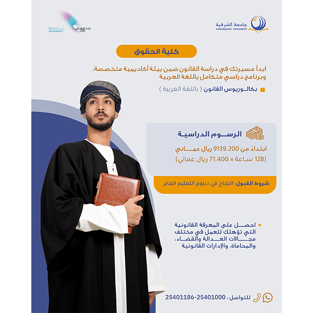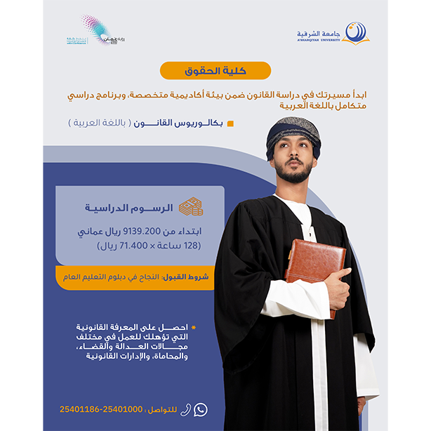 | القانون | 4 | العربية | 7800.00 | إنهاء دبلوم التعليم العام بنجاح |