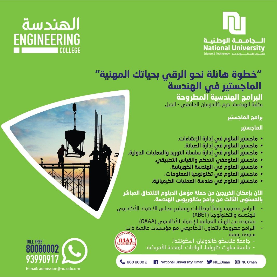 إن الجامعة الوطنية للعلوم والتكنولوجيا تشكلت من مبادرة أكاديمية لطرح تخصصات متعددة تحت مظلة واحدة في مجموعة من الأحرام الجامعية حيث تم إنشاء الجامعة عبر دمج 3 كليات مهنية مرموقة في سلطنة عمان وهي كلية كالدونيان الهندسية وكلية عمان الطبية وكلية الصيدلة . وتدار الجامعة الوطنية في أربعة أحرام جامعية في سلطنة عمان وهي الحرم الجامعي لكلية الهندسة في الحيل الجنوبية ، والحرم الجامعي لكلية الطب والعلوم الصحية في صحار، و الحرم الجامعي لمركز الدراسات التأسيسية في مرتفعات المطار ، والحرم الجامعي لكلية الصيدلة ومكاتب المقر الرئيسي للجامعة في بوشر. ويهدف مؤسسو الجامعة الوطنية للعلوم والتكنولوجيا بأن تنال الجامعة الاعتراف الدولي وأن تصبح متميزة في التعليم والبحث العلمي ، تقودها في ذلك القيم الإجتماعية. وتسعى الجامعة إلى تنفيذ رسالتها المتمثلة في تحويل الطلاب إلى خريجين عالميين يسعون لاكتساب المعارف وتطبيقها للارتقاء بالمجتمع. يؤمن المؤسسون إيماناً راسخاً بأن الجامعة الوطنية تتطلع للوصول إلى آفاق جديدة من التميز في العلوم والتكنولوجيا، وأن ينظر إليها باعتبارها رمزاً للتعليم العالي والبحث العلمي في سلطنة عمان. وبهدف تطبيق المعايير والممارسات العالمية في برامج الجامعة الأكاديمية ترتبط الجامعة بشراكات أكاديمية مع مؤسسات عالمية رائدة في المملكة المتحدة والولايات المتحدة الأمريكية إلى جانب تعاون أكاديمي مع 22 مؤسسات أخرى حول العالم في مجال البحث العلمي والتبادل الطلابي وتتضمن الشراكة الأكاديمية بين الجامعة الوطنية والجامعات العالمية بالارتباط الأكاديمي مع جامعة جلاسكو كالدونيان بسكوتلندا بالمملكة المتحدة وجامعة وست فرجينيا وجامعة ساوث كارولينا في الولايات المتحدة الأمريكية. وتتم صياغة المبادرات الاستراتيجية للجامعة الوطنية للعلوم والتكنولوجيا من قبل مجلس أمناء الجامعة الذي يتضمن شخصيات بارزة من مجالات مختلفة من شتى دول العالم. وتفتخر سلطنة عمان بنخبة من أبنائها المهندسين والأطباء والصيادلة الذين تخرجوا من الجامعة الوطنية للعلوم والتكنولوجيا والذين يعملون حاليا في مختلف المؤسسات في عمان بكل حرفية وأمانة وإخلاص. وتتميز الجامعة ببيئة فريدة متعددة الثقافات حيث تدرس فيها مجموعة من الطلبة من مختلف الجنسيات يصل عددهم الى 4000 طالبا وطالبة من أكثر من 33 دولة حول العالم ومجموعة من الموظفين من جنسيات متعددة مما جعل الجامعة الوطنية قرية تعليمية عالمية بحق.